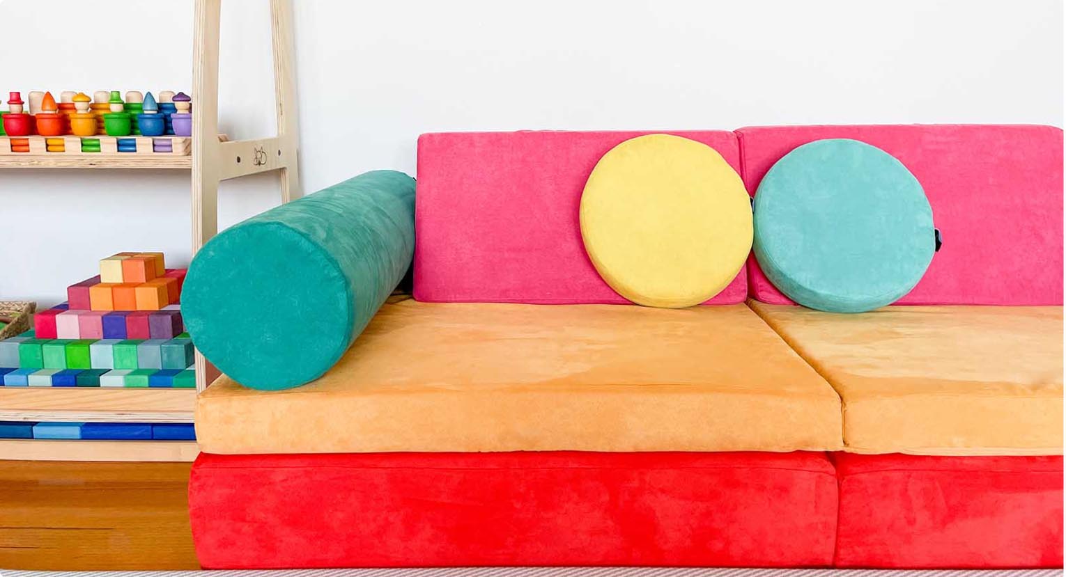 All of the materials used in the creation of our play couches are soft and kind to little ones’ skin. They are also durable and dependable, easy to clean and resistant to wear and tear.
